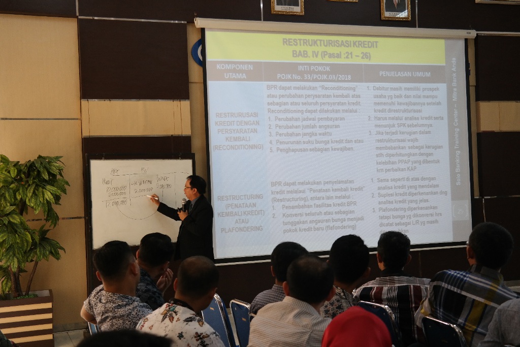 Narasumber selama 2 hari pelatihan mengupas tuntas tentang bagaimana secara teknis cara dan praktik Penerapan POJK NO. 33/ POJK.03/2018 tentang Kualitas Aset Produktif (KAP) dan Pembentukan PPAP Terhadap Kinerja BPR .