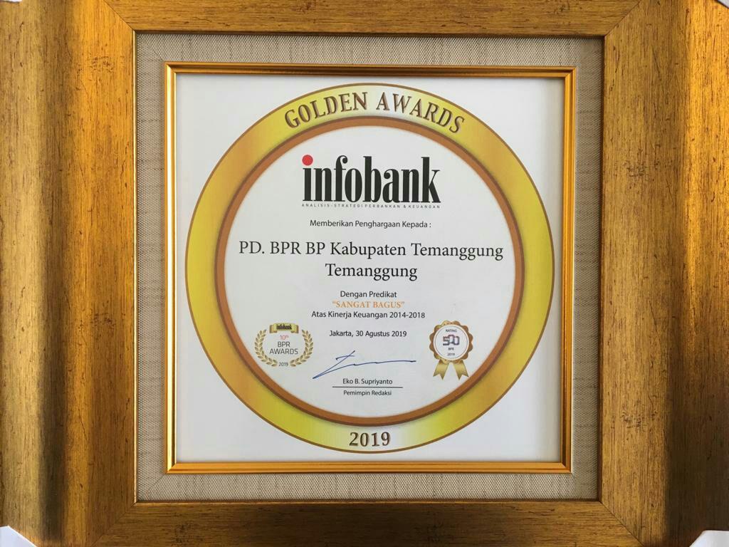 Pada bulan Agustus tahun ini bertepatan dengan hari jum’at tanggal 30 Agustus 2019 PD BPR “Bank Pasar” Kabupaten Temanggung menerima penghargaan INFOBANK GOLDEN AWARDS 2019 dengan Predikat “SANGAT BAGUS” atas kinerja keuangan 2014 - 2018 dalam acara Penganugerahan 10Th Infobank BPR Awards 2019 di Jakarta.