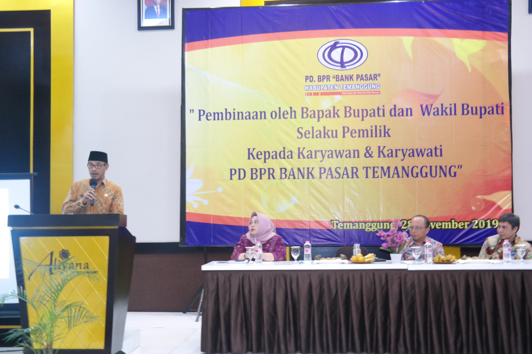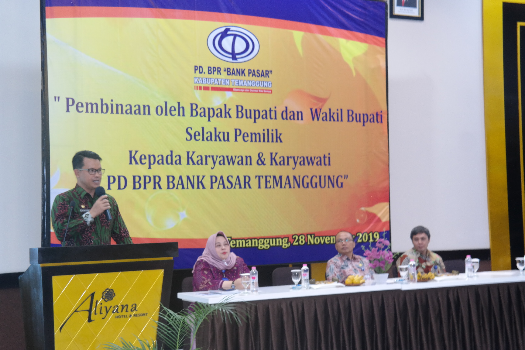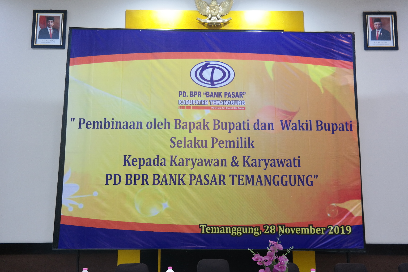 Hari Kamis Tanggal 28 November 2019 bertempat di Gedung Pertemuan ALIANA Hotel & Resort dilaksanakan kegiatan Pembinaan Umum oleh Bapak Bupati dan Bapak Wakil Bupati Temanggung Kepada Seluruh Karyawan Karyawati PD BPR “Bank Pasar”Kabupaten Temanggung.