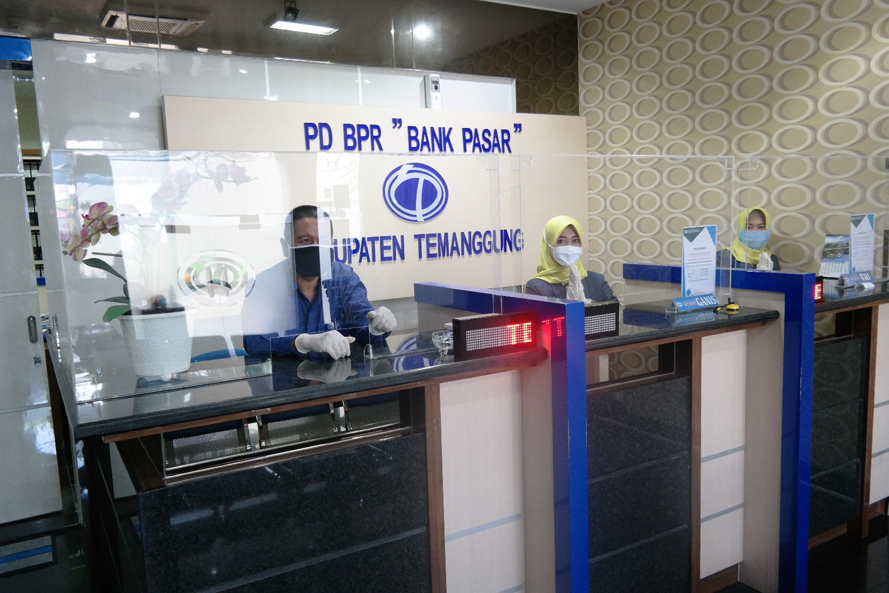 PD BPR “Bank Pasar” Kabupaten Temanggung menerapkan protokol kesehatan kepada para nasabah untuk bertransaksi di era new normal (normal baru) Covid-19. Langkah ini merupakan upaya antisipasi Penyebaran Virus Corona (Covid-19) di lingkungan kantor PD BPR “Bank Pasar” Kabupaten Temanggung. Untuk mengantisipasi penyebaran Covid-19 setiap nasabah wajib periksa suhu badan memakai masker, mencuci tangan menggunakan sabun atau menggunakan hand sanitizer yang sudah disediakan dan menjaga jarak ketika duduk di kursi pelayanan.
