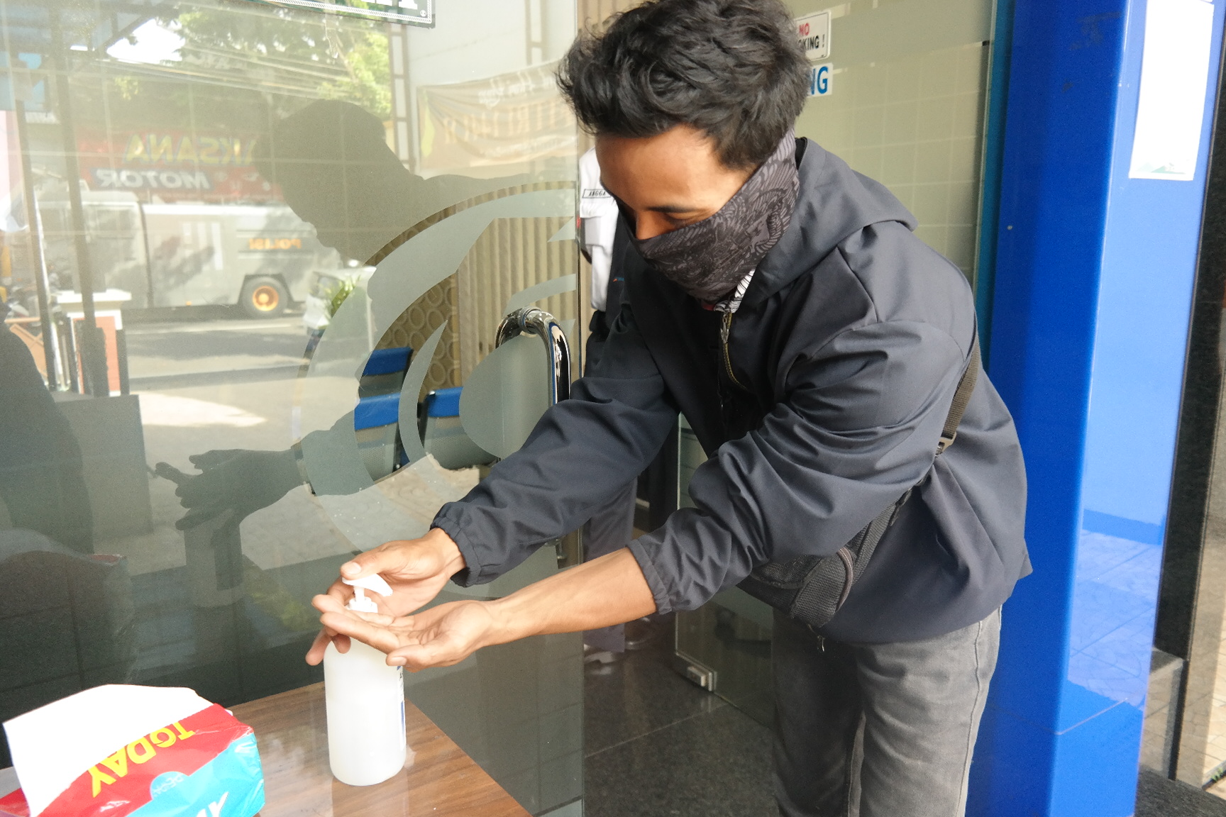 Membersihkan Tangan Dengan Hand Sanitizer Sebelum Memasuki Ruang Pelayanan