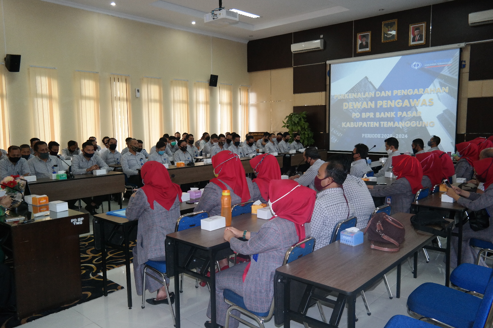 Selasa 21 Juli 2020 bertempat di Aula Kantor PD BPR “Bank Pasar” Kabupaten Temanggung dilaksanakan acara “Perkenalan dan Pengarahan Dewan Pengawas PD BPR “Bank Pasar” Kabupaten Temanggung (Periode 2020 - 2024). Acara ini dihadiri oleh Ketua Dewan Pengawas yaitu Bapak Ir. Kristri Widodo, M.Si , Anggota Dewan Pengawas yaitu Bapak Iwan Siswanto, S.Si., M.M. dan Seluruh Karyawan Karyawati PD BPR “Bank Pasar”Kabupaten Temanggung.