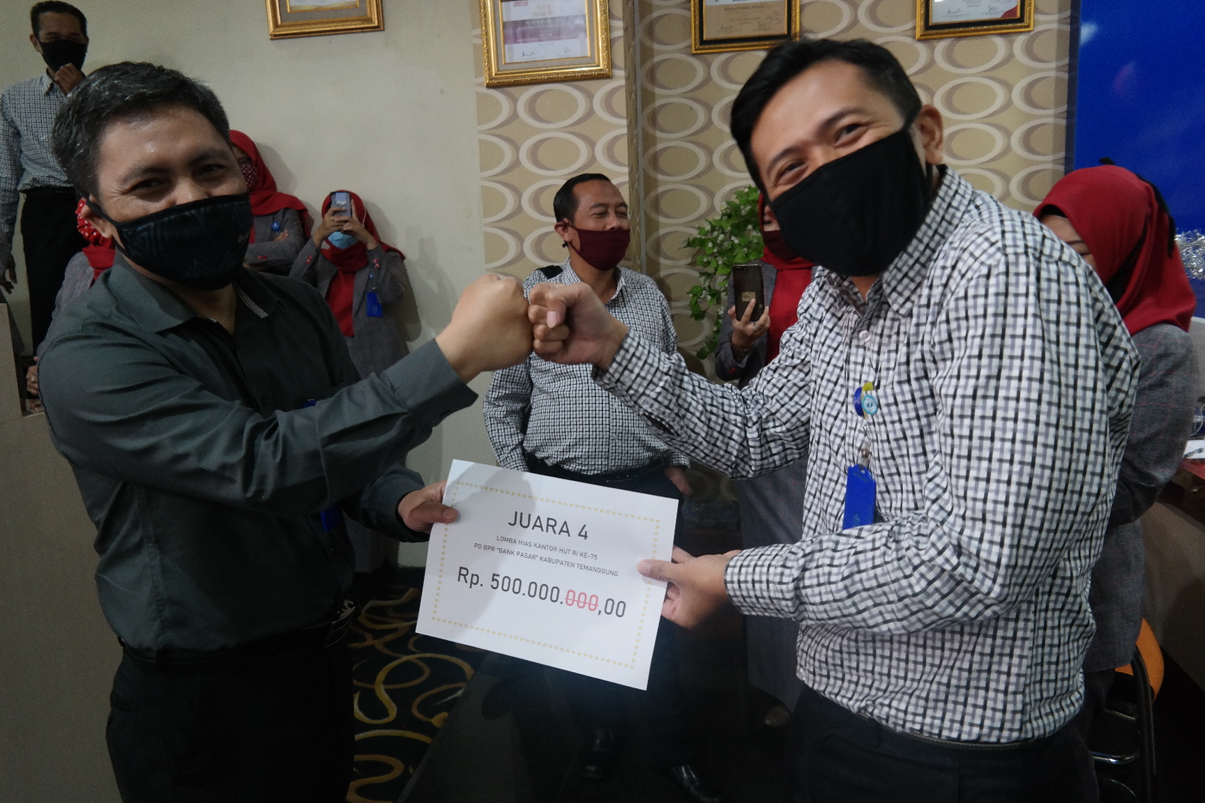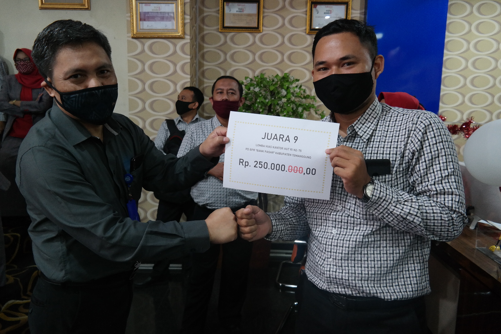 Memperingati hari Kemerdekaan Hari Ulang Tahun Republik Indonesia yang Ke 75 PD BPR “Bank Pasar” Kabupaten Temanggung menyiapkan dekorasi spesial ruangan dari Kantor Pusat, Kantor Kas dan Kantor Cabang Megelang dengan tema warna Merah Putih. Mulai dari hiasan dinding , balon , dan berbagai macam pernak pernik unik dan kreatif menghiasi setiap penjuru ruangan.