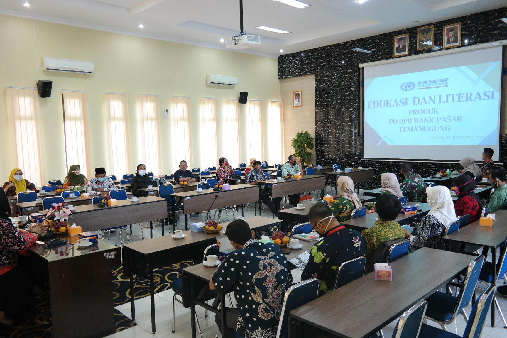 PD BPR “Bank Pasar” Kabupaten Temanggung mengadakan event Edukasi & Literasi di Aula Pertemuan Bank Pasar Temanggung pada hari kamis 19 November 2020. Acara ini dihadiri oleh Direktur Utama PD BPR “Bank Pasar” Kabupaten Temanggung Ibu Retno Nendra Wiarty, S.E., M.M. didampingi oleh Kepala Bagian Kredit Ibu Herlina Dwi Ratnasari, S.E. dan juga dihadiri para nasabah.
