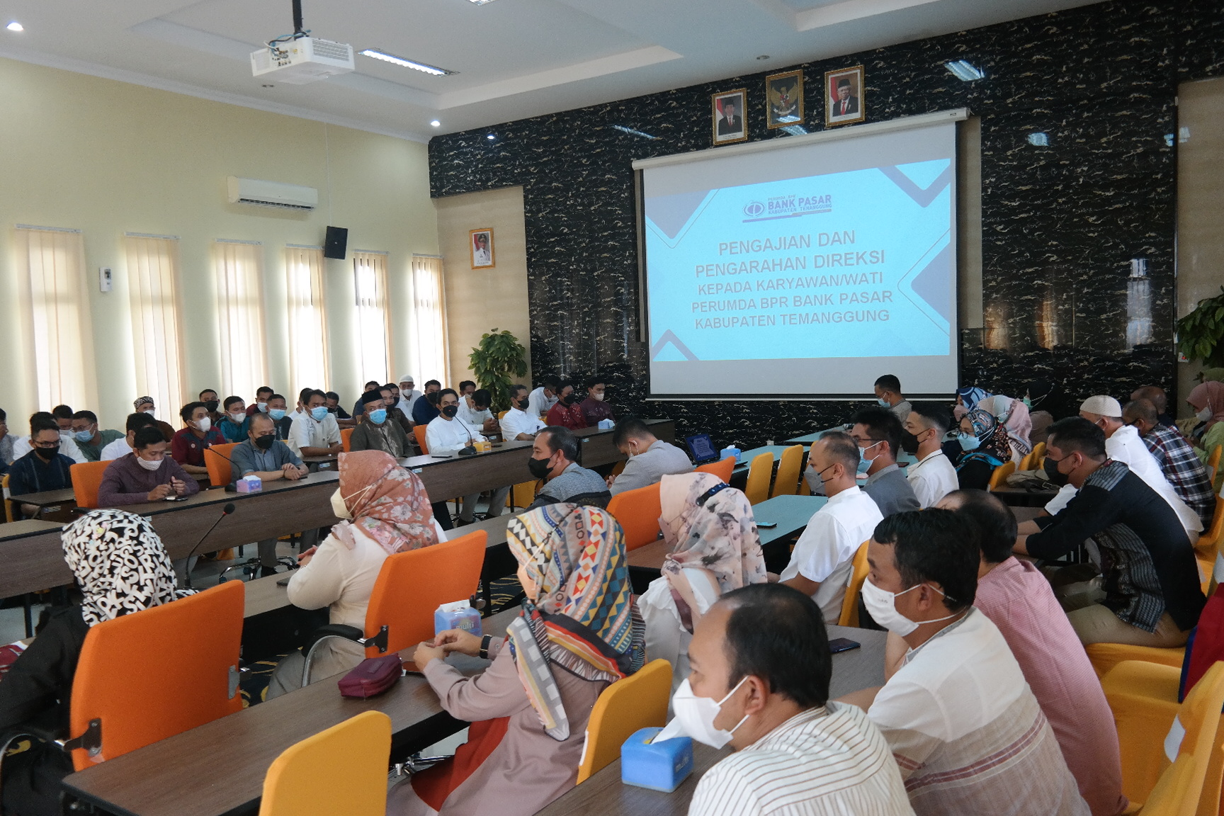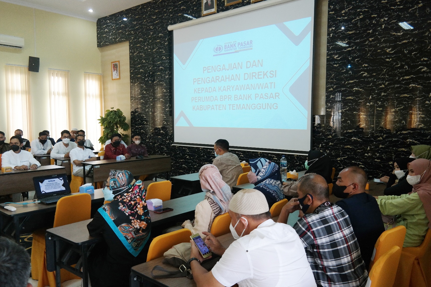 Mengawali tahun yang baru tepatnya senin tanggal 4 Januari 2022 bertempat di Aula Meeting Perumda BPR Bank Pasar Kabupaten Temanggung diadakan acara PENGAJIAN DAN PENGARAHAN DIREKSI kepada semua karyawan. Acara ini merupakan agenda acara awal tahun yang bertujuan untuk merefresh semua karyawan/karyawati agar mendapatkan bekal ilmu lewat Pengajian & tak lupa mendapatkan pengarahan dari Direksi untuk menghadapi rundown pekerjaan tahun 2022.